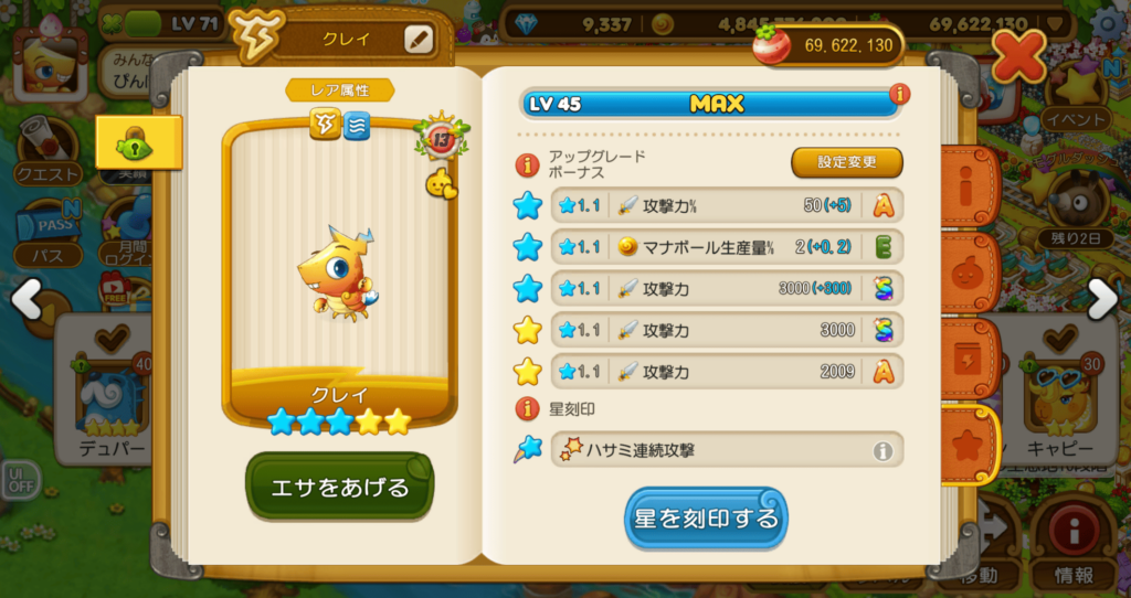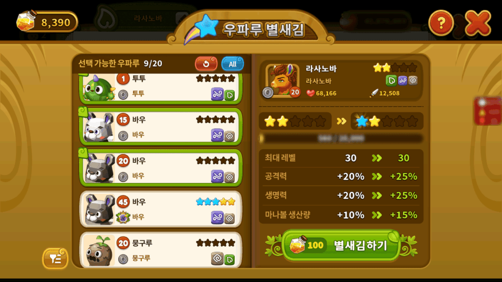 • 星刻印は、該当ウパルの昇級段階と同じ段階まで成長させることができます。星刻印の数による獲得ポイント数はページ下部をご確認ください。