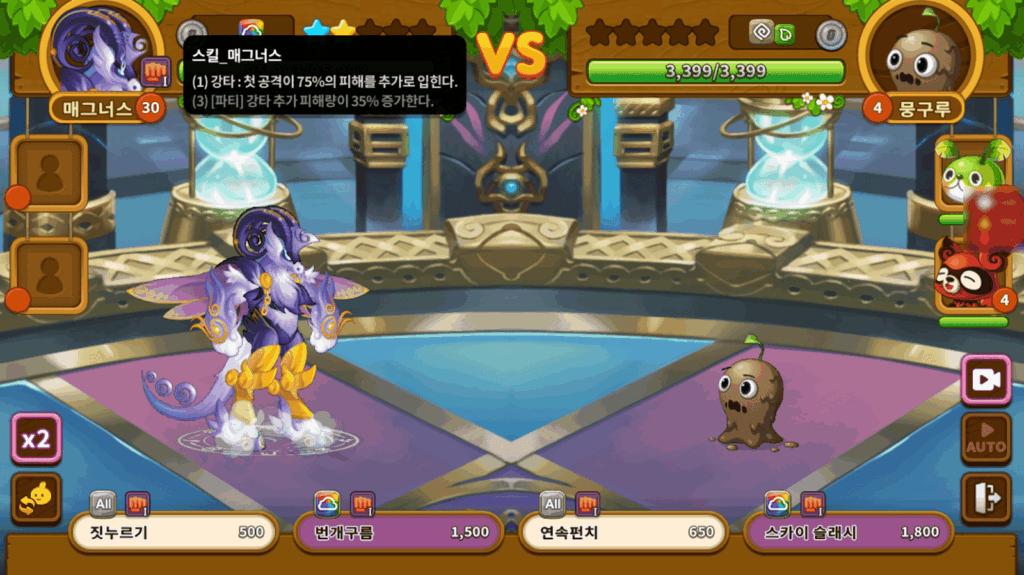 マナチャージ 相手ウパルを攻撃する度に、「ビジョンエネルギー」を獲得し、重複数に応じて有利な効果を得ます。 「マナチャージ」効果を持つウパルと「マナエネルギー」を共有します。マナエネルギーの重複数に応じて、強化効果を持つウパルが存在することがあります。